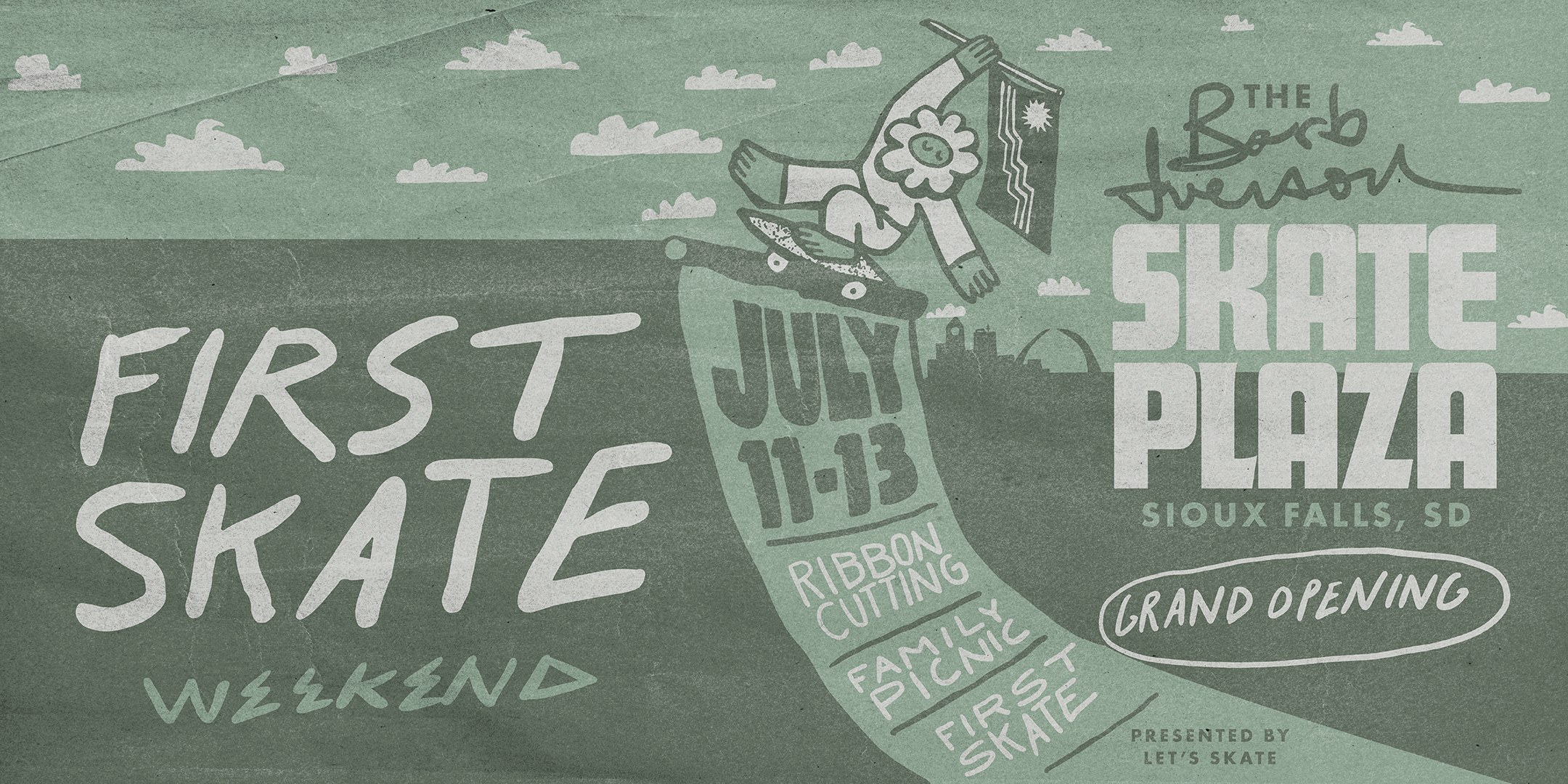 4:30 pm, Thursday, July 11th: Greater Sioux Falls Chamber of Commerce and City of Sioux Falls - Municipal Government ribbon cutting at the skatepark, featuring Mayor Paul Tenhaken, Sioux Falls Parks and Recreation Board President Mike Begeman, Let's Skate Board President Allison Dvorak, and Erika Iverson (niece of Barb Iverson.)